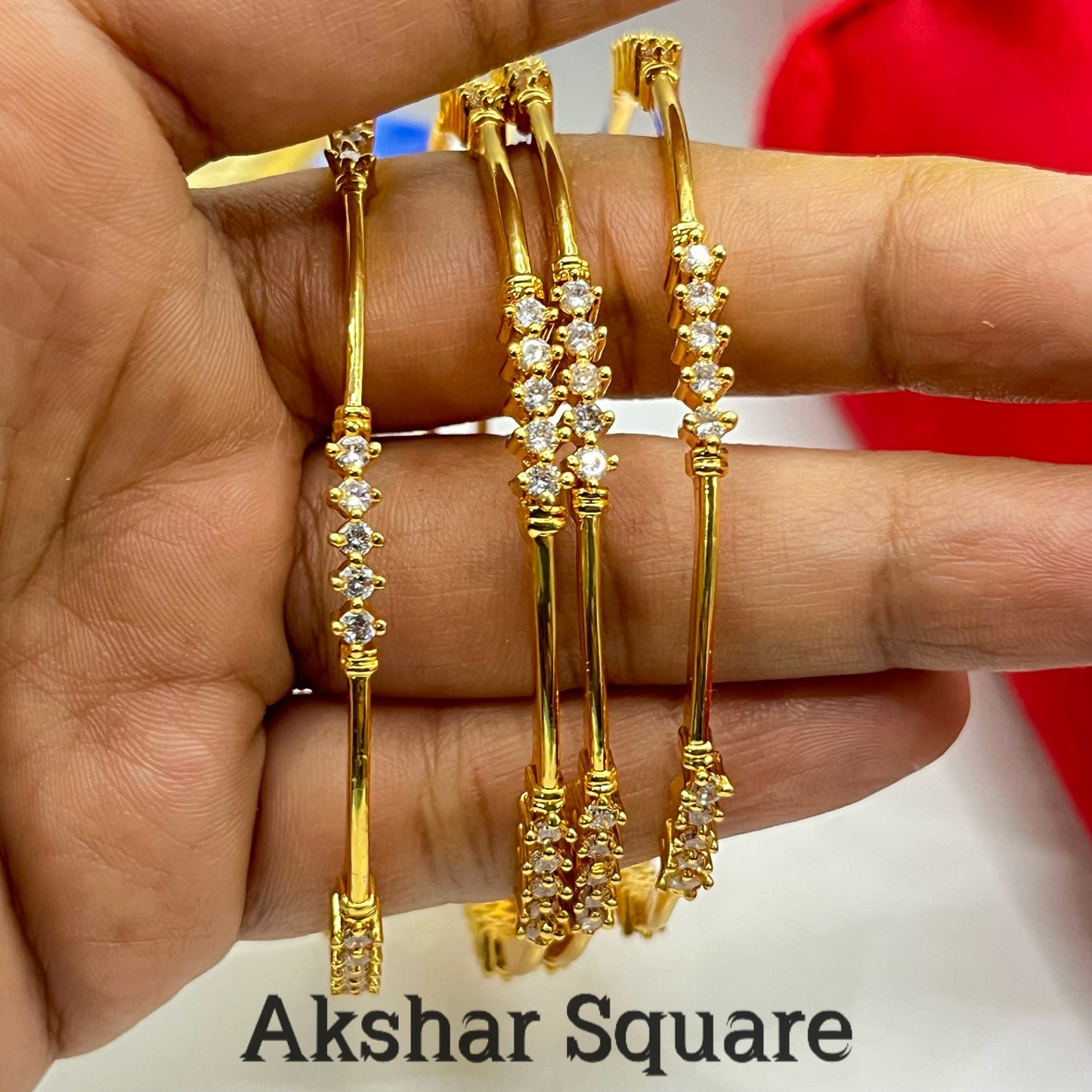 Premium quality gold finish bangles with american diamond (AD) stones.