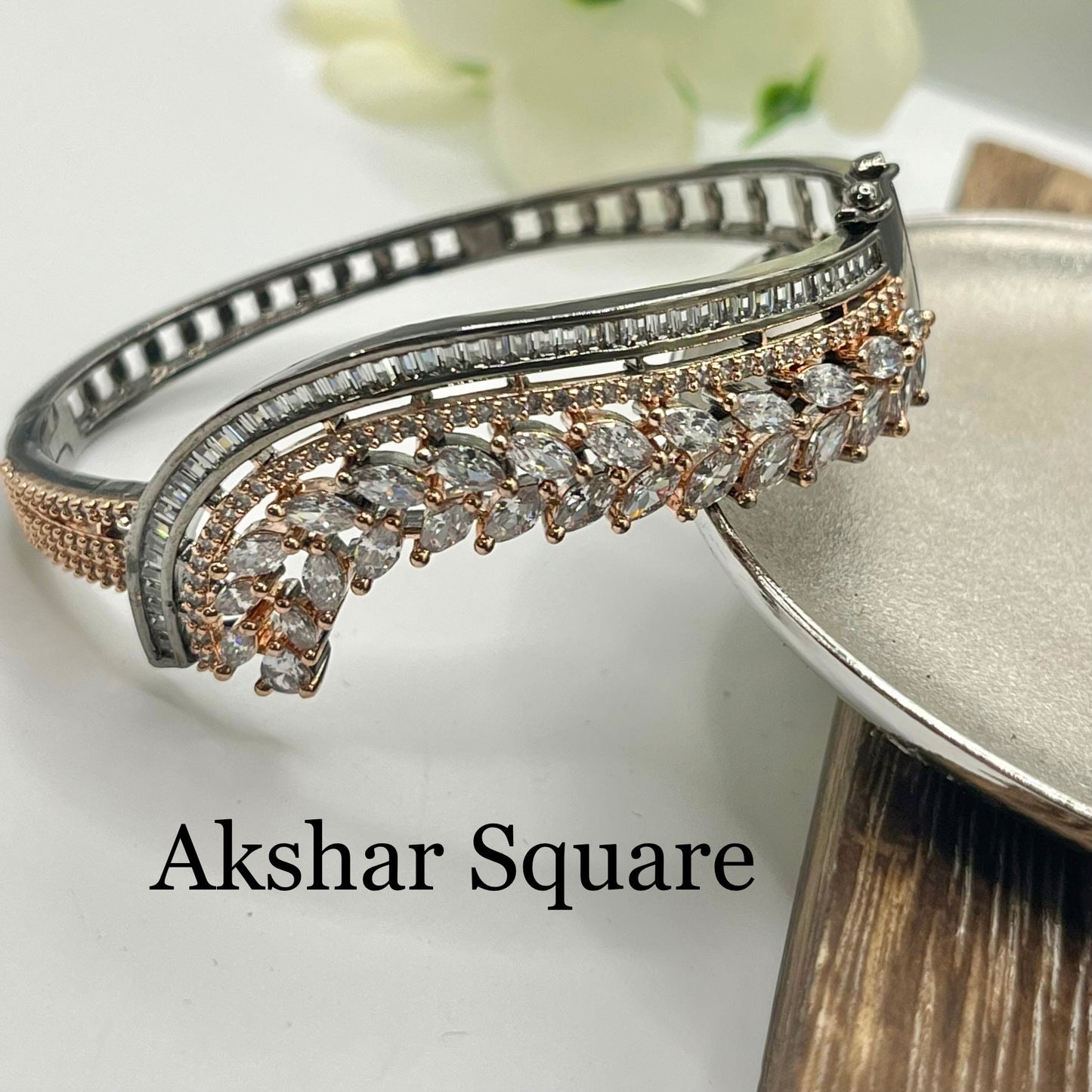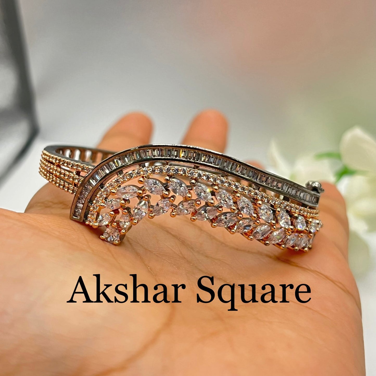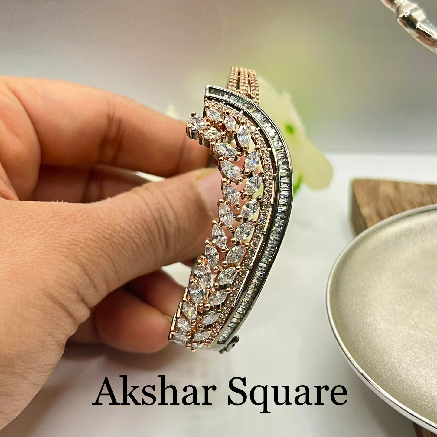 Victorian Rose finish bracelet with all clear cubic zirconia(CZ) & baguette stones.