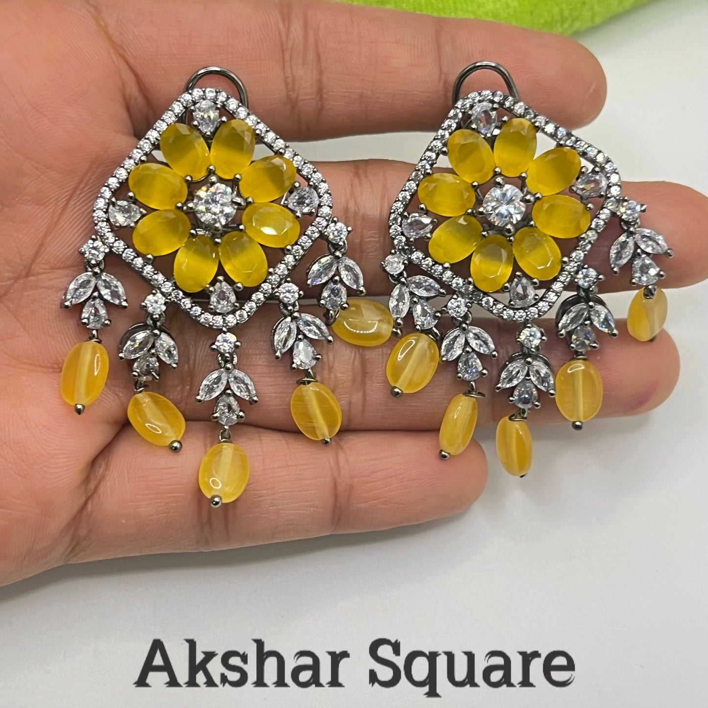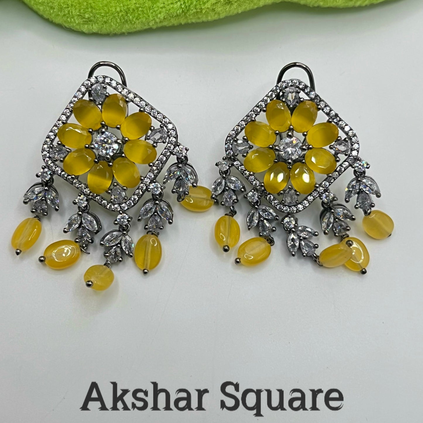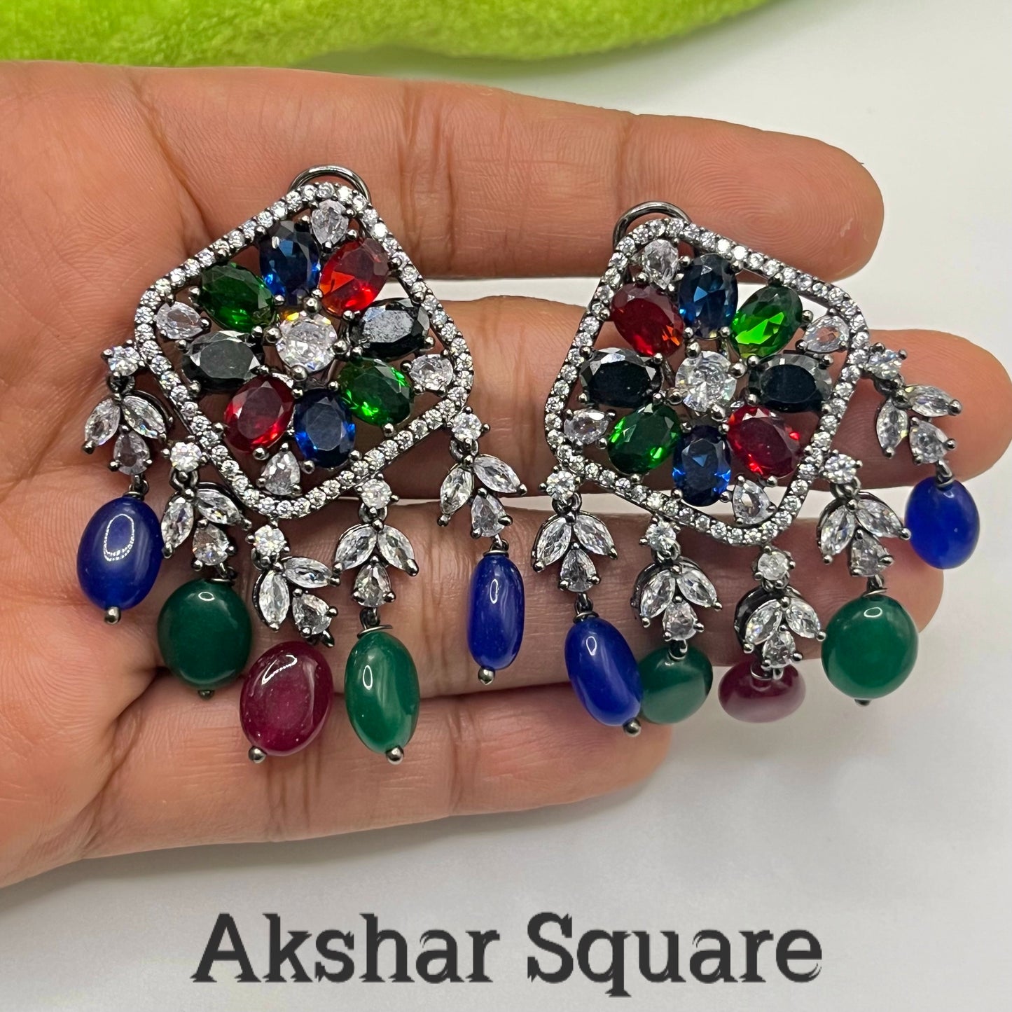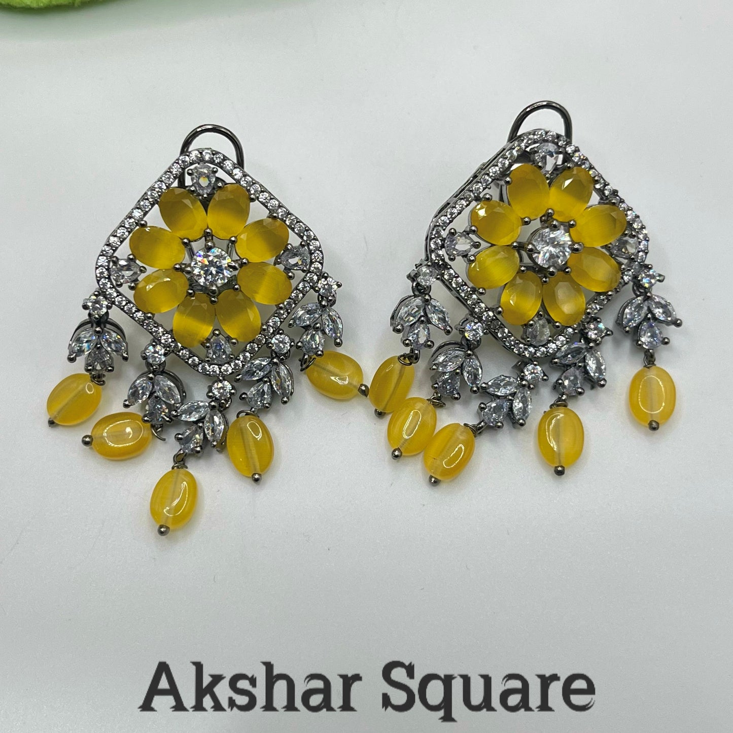 Victorian finish CZ(Cubic Zirconia) stone earrings with beads danglers. Comes with back clip and back screw for comfortable wear. Perfect partywear collection.