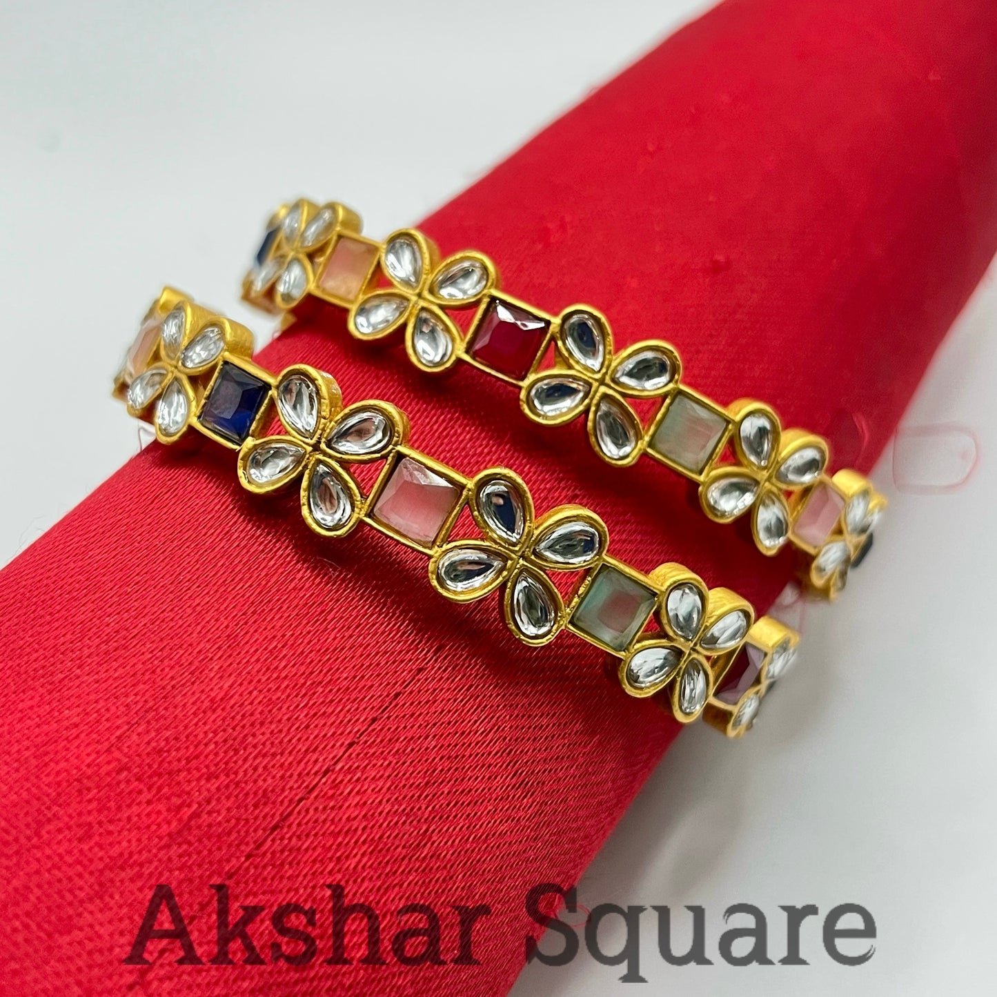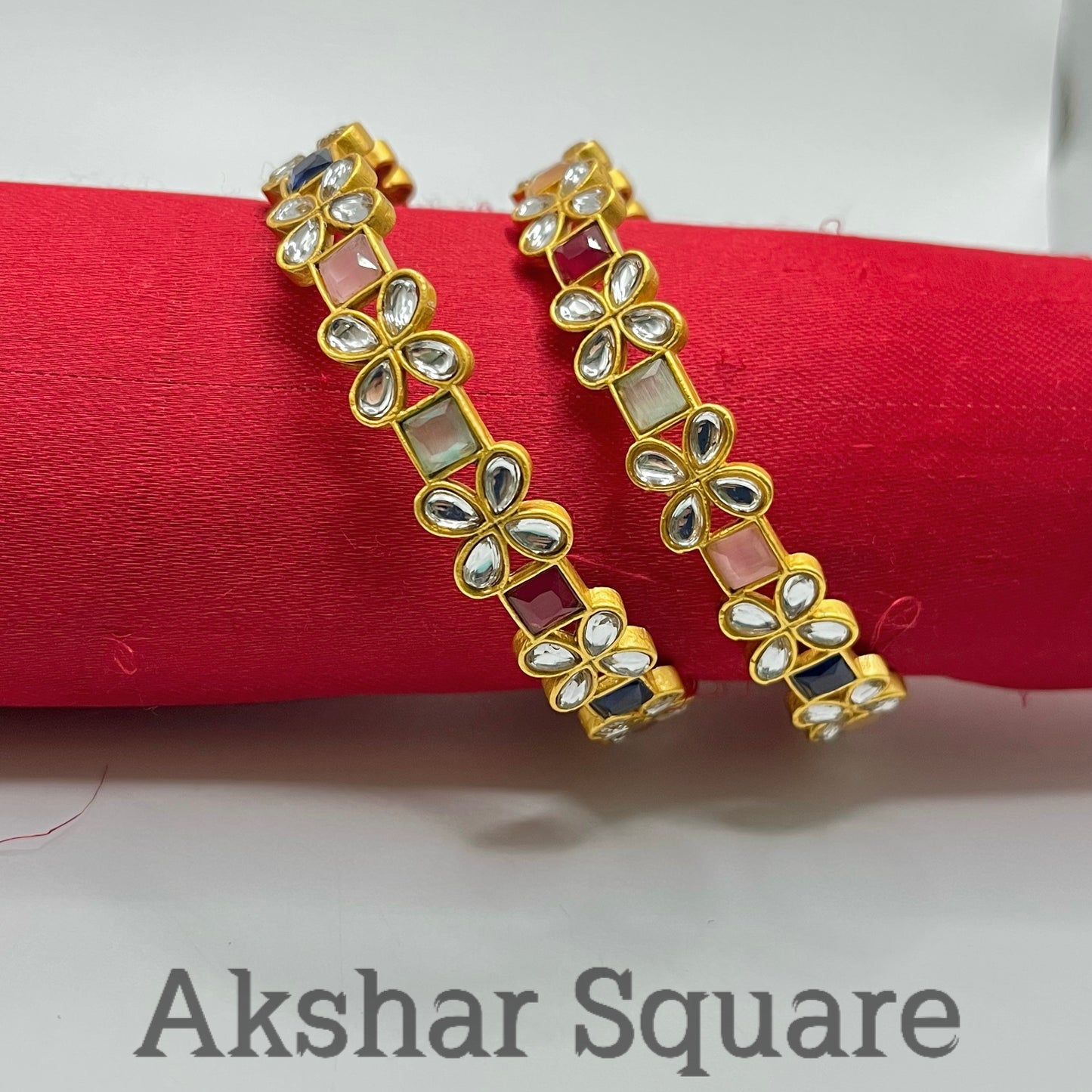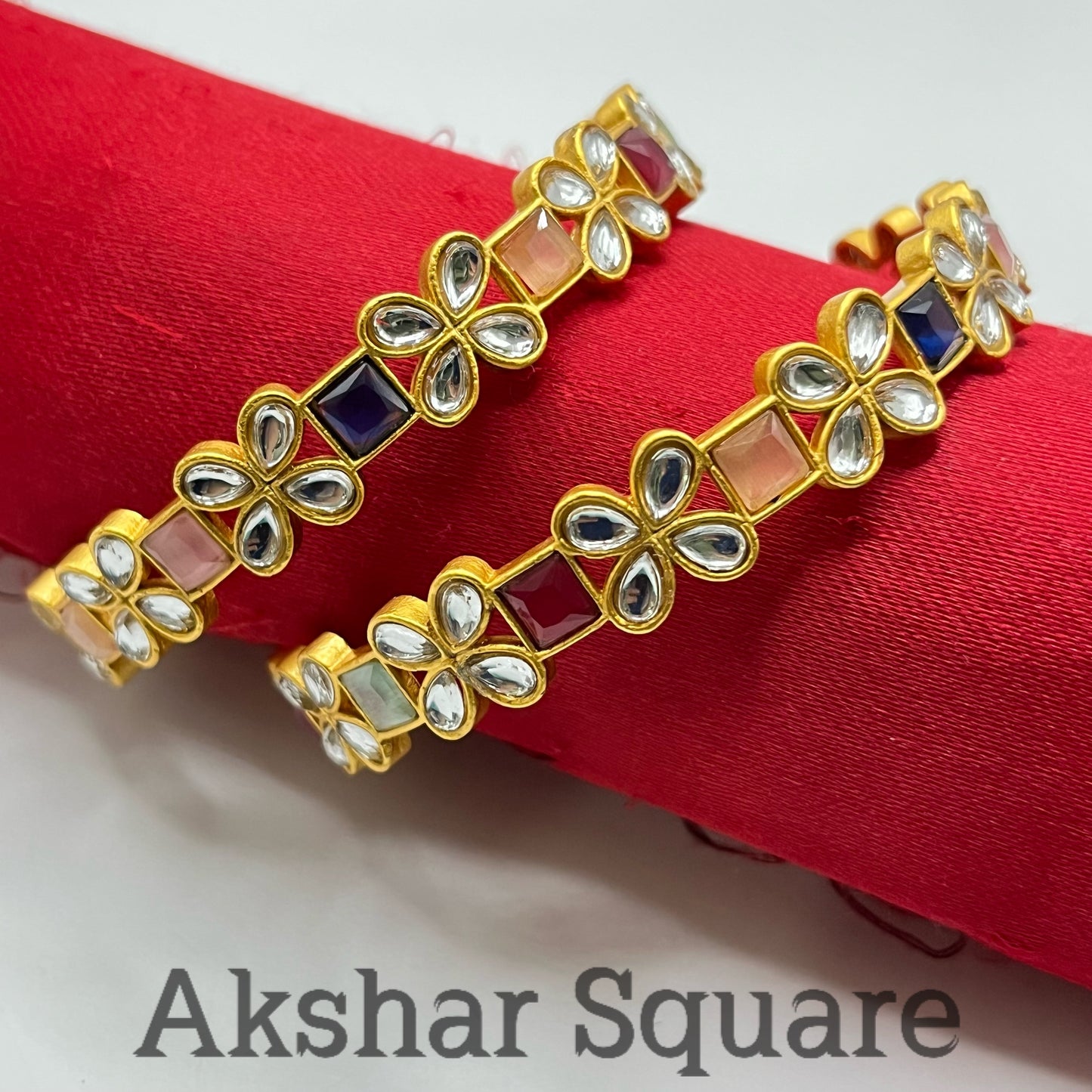 Premium quality gold finish bangles with american diamond (AD) stones.