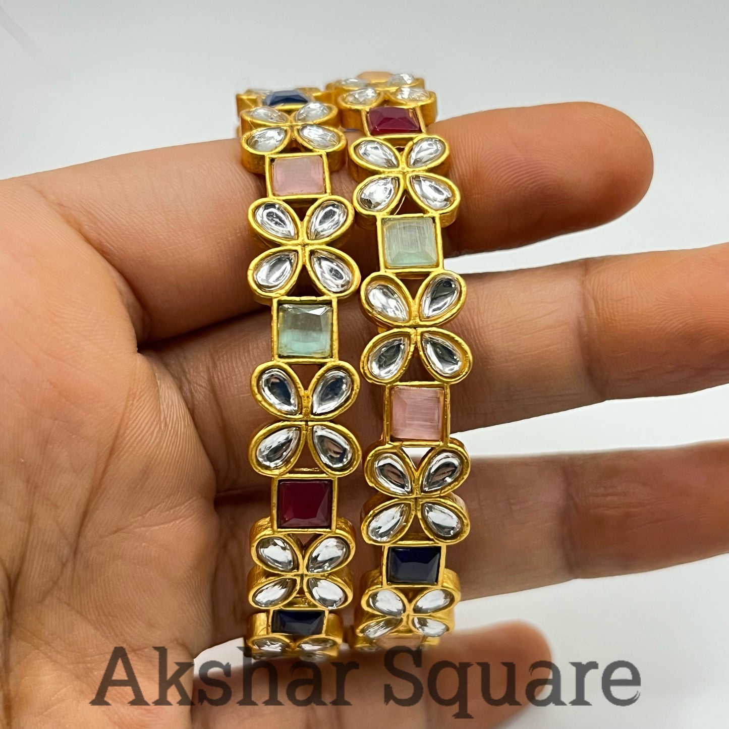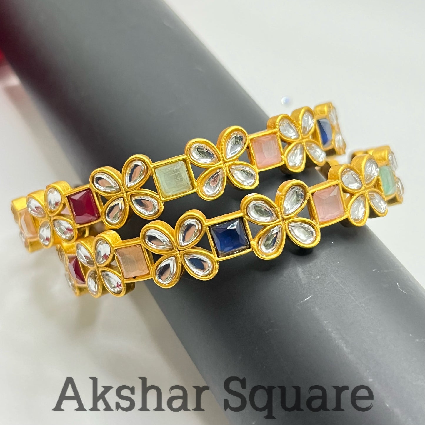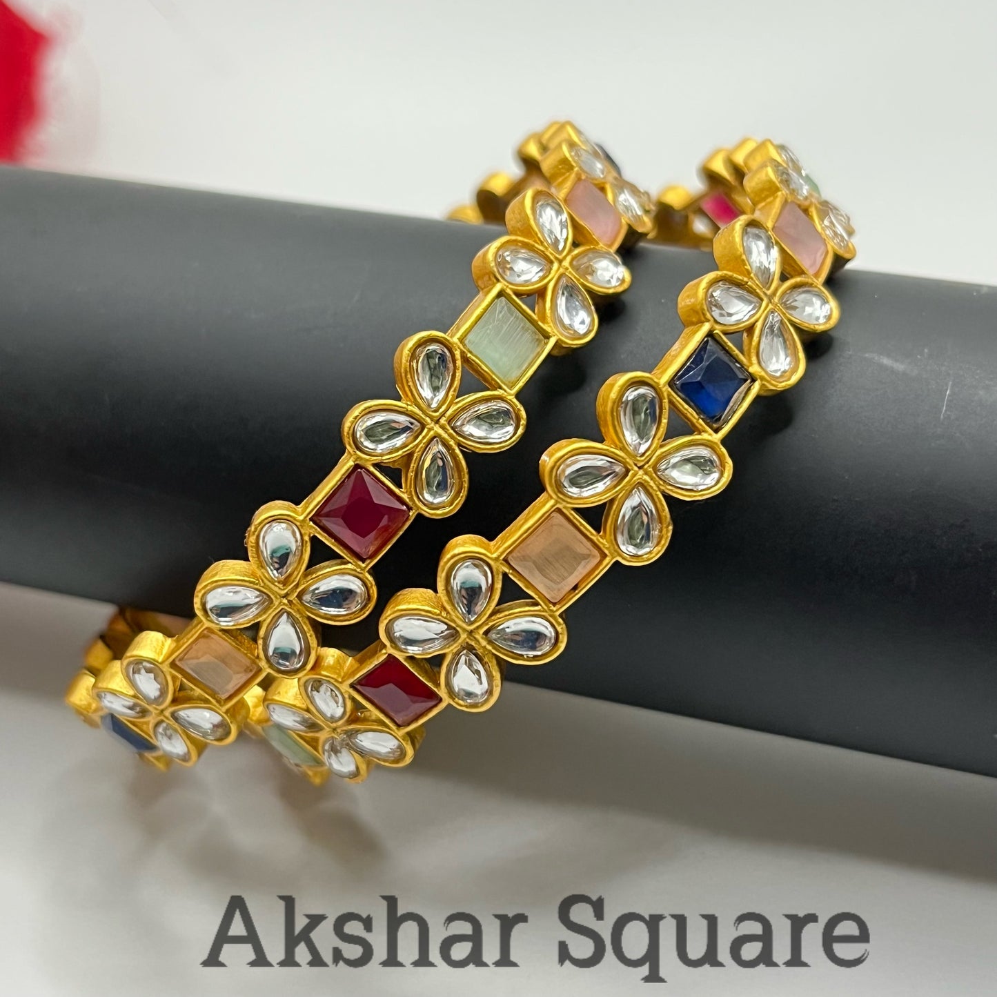 Premium quality gold finish bangles with american diamond (AD) stones.