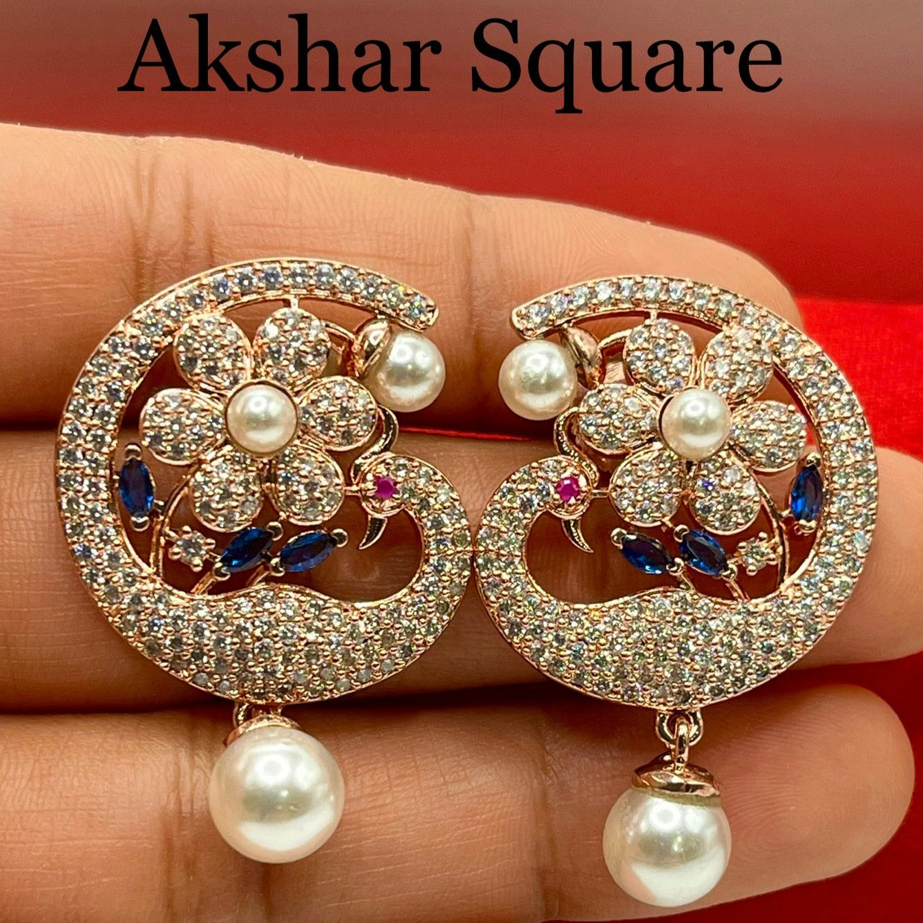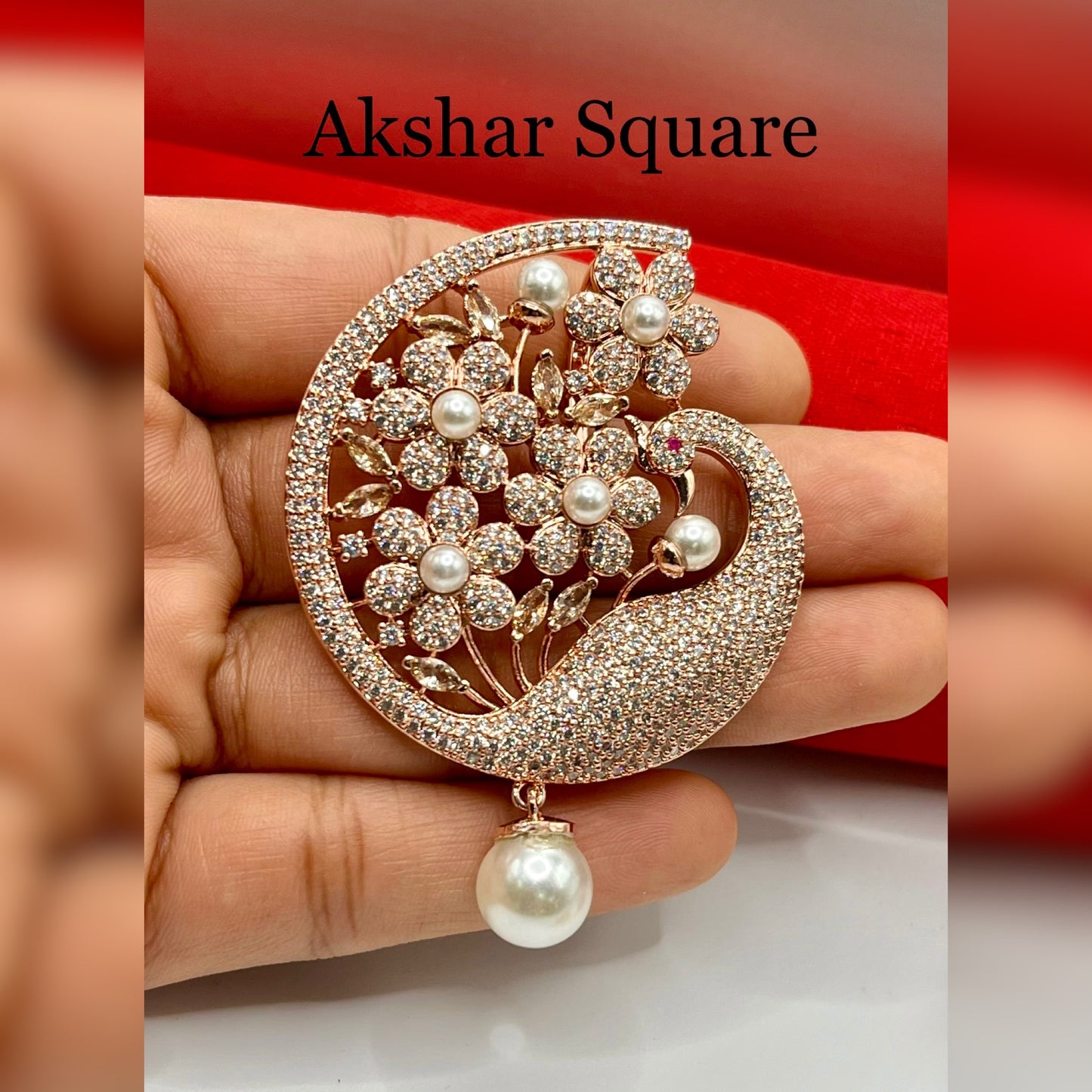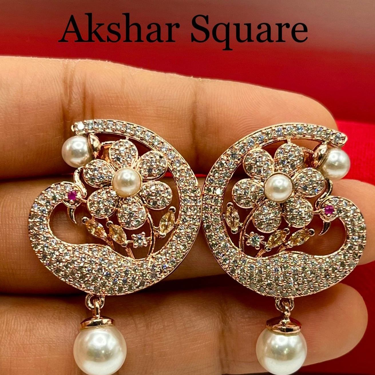 Premium quality rosegold finish peacock pendant set with CZ stones & pearls. Combo includes pendant & stud earrings.